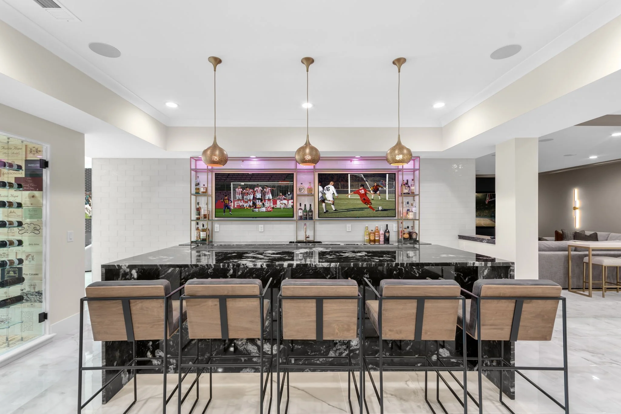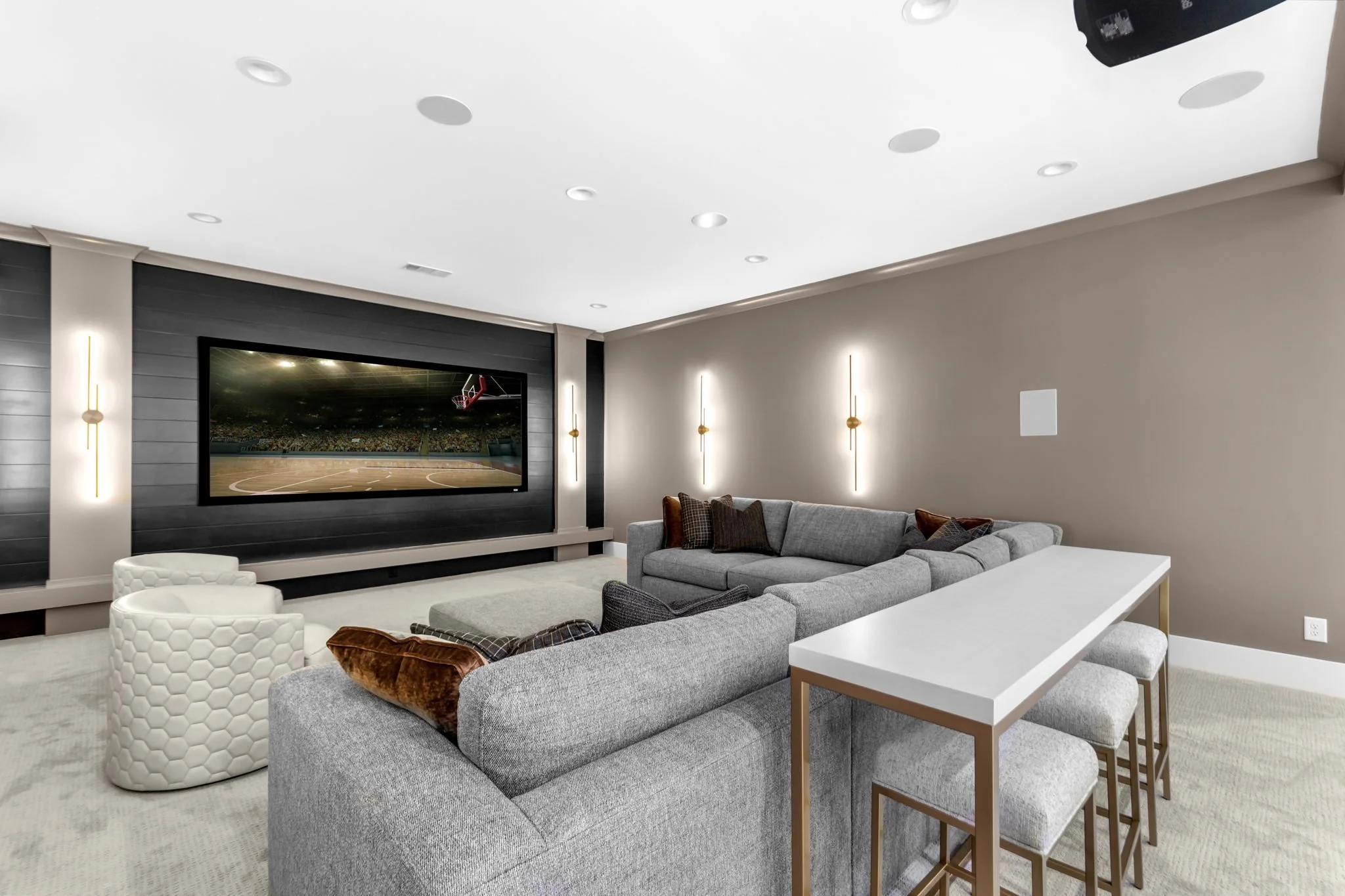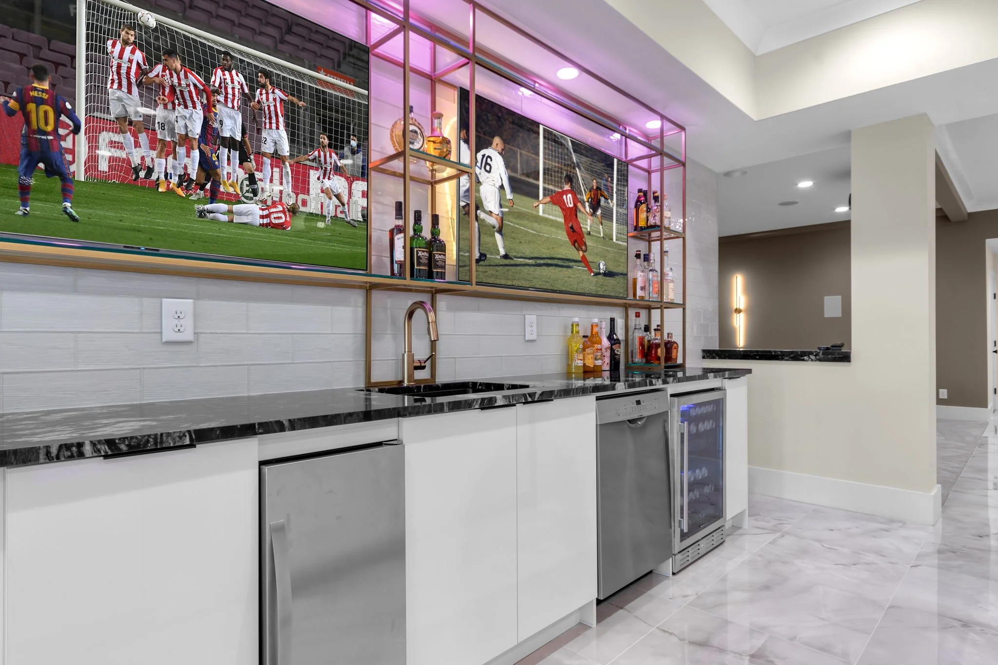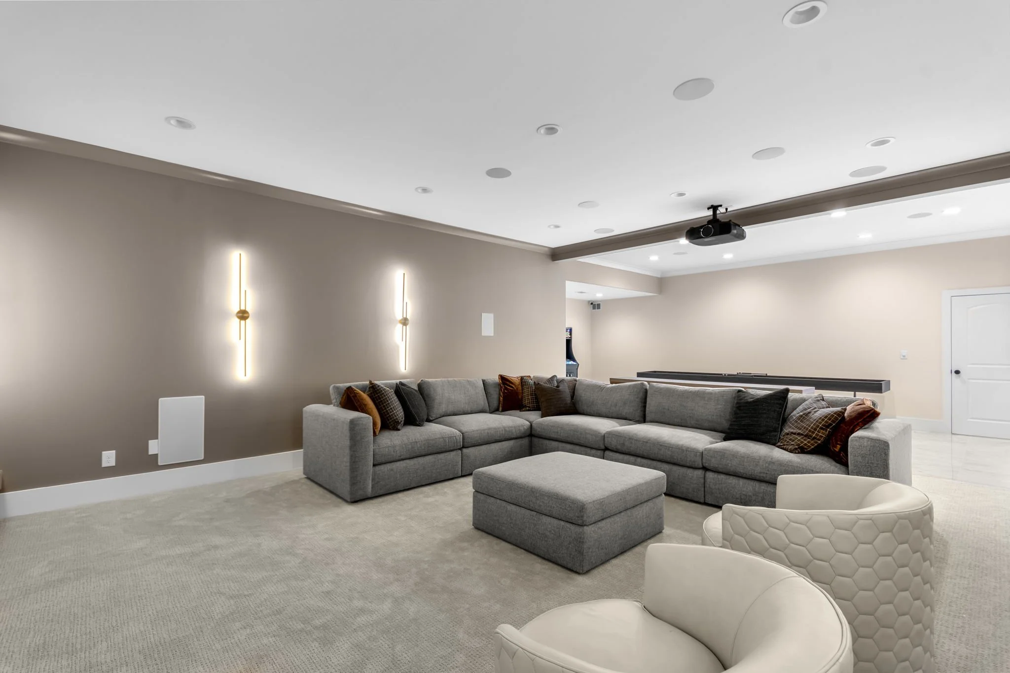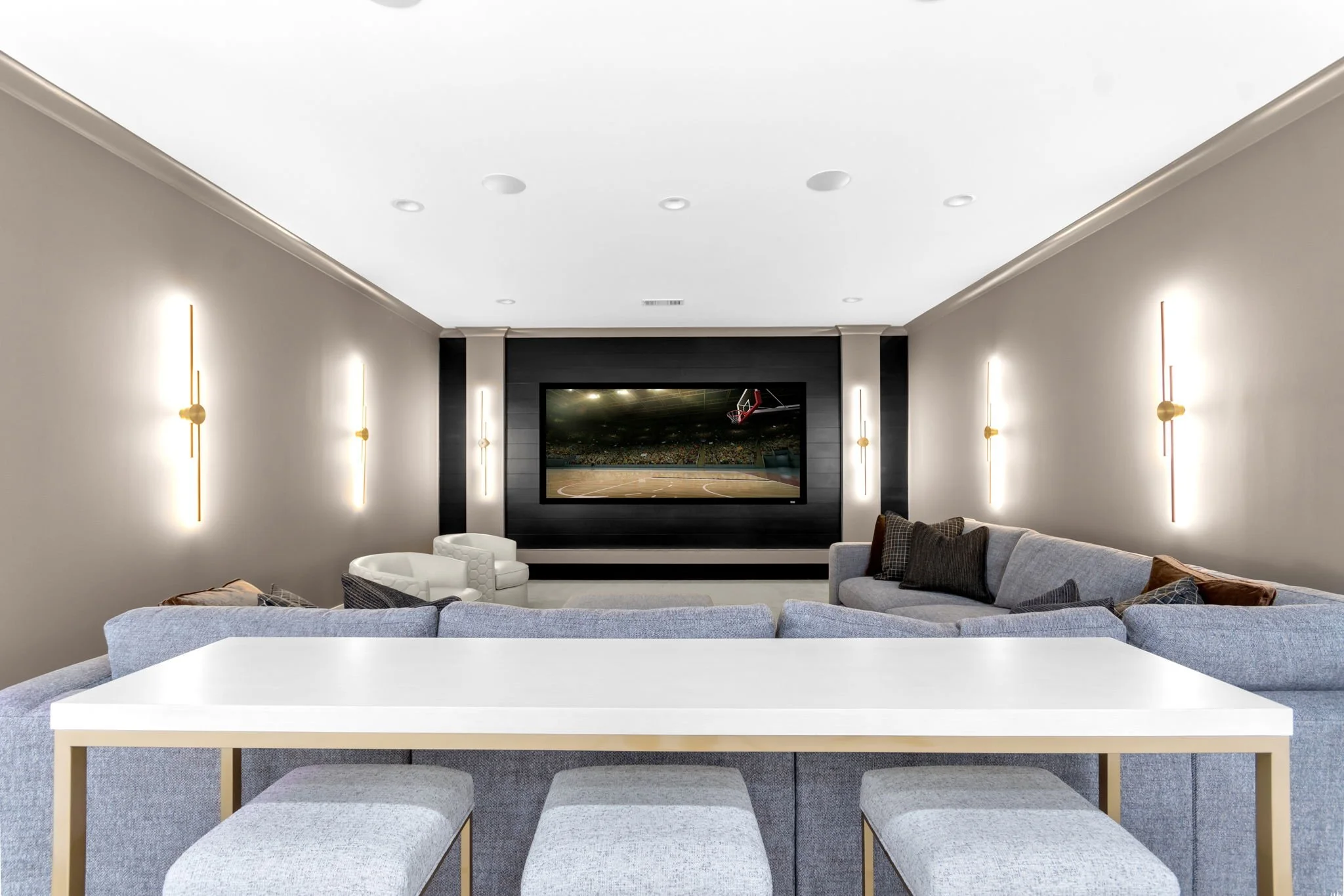 Step into Bojana's Basement, where modern elegance and entertainment converge effortlessly. Our client dreamt of an open floor plan, complete with a hidden man cave for her husband and a sleek entertainment area. We delivered this and more, incorporating luxurious amenities and thoughtful design elements.