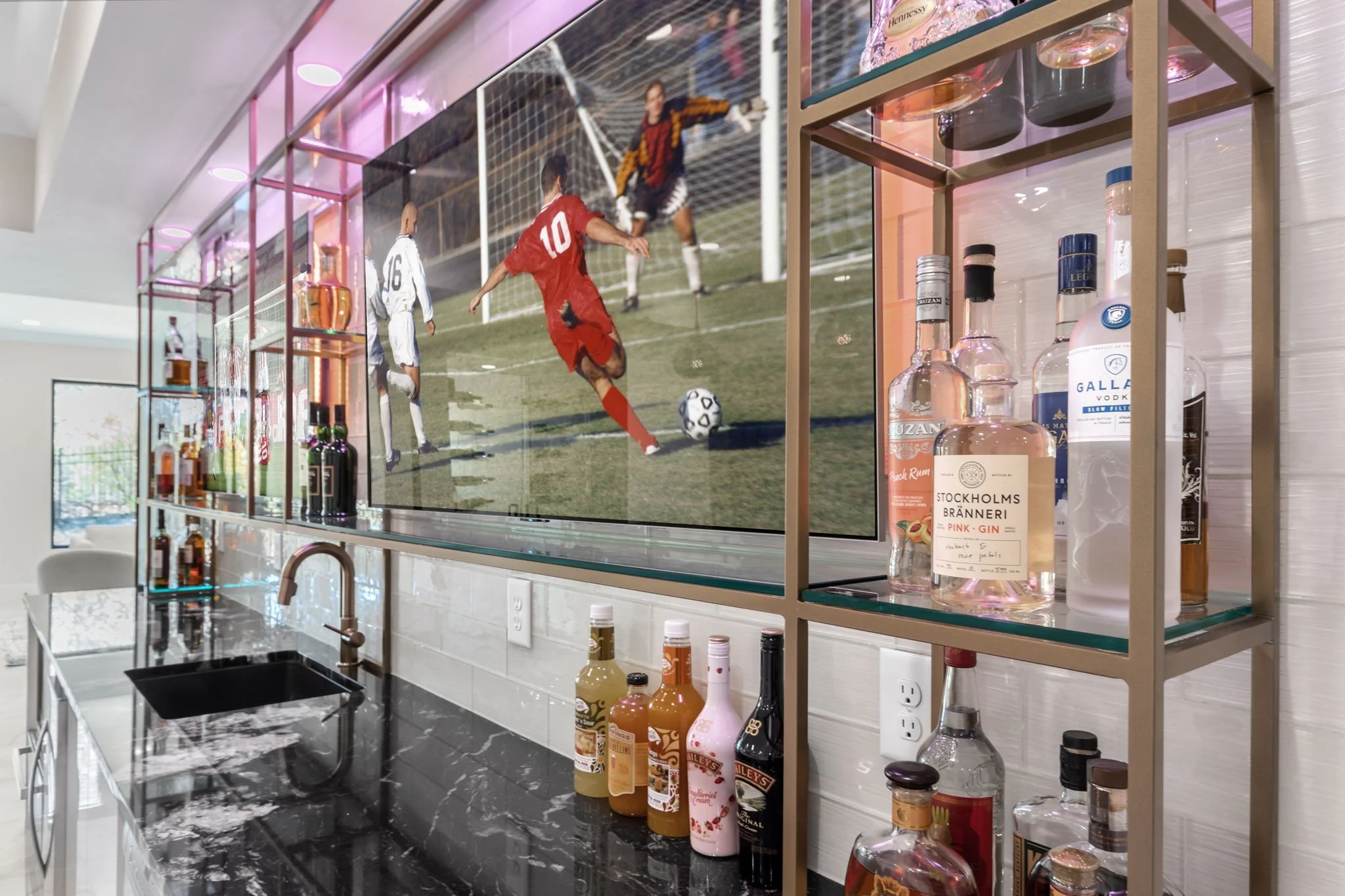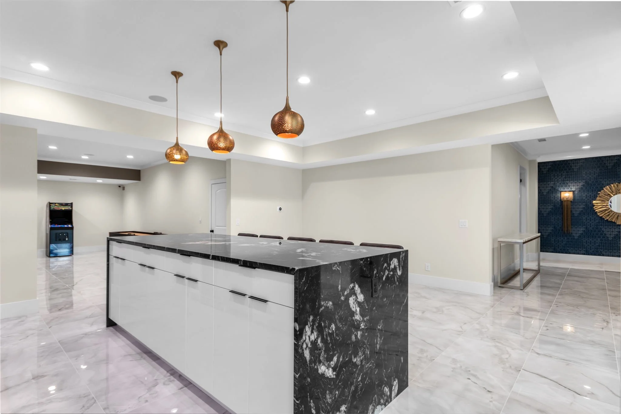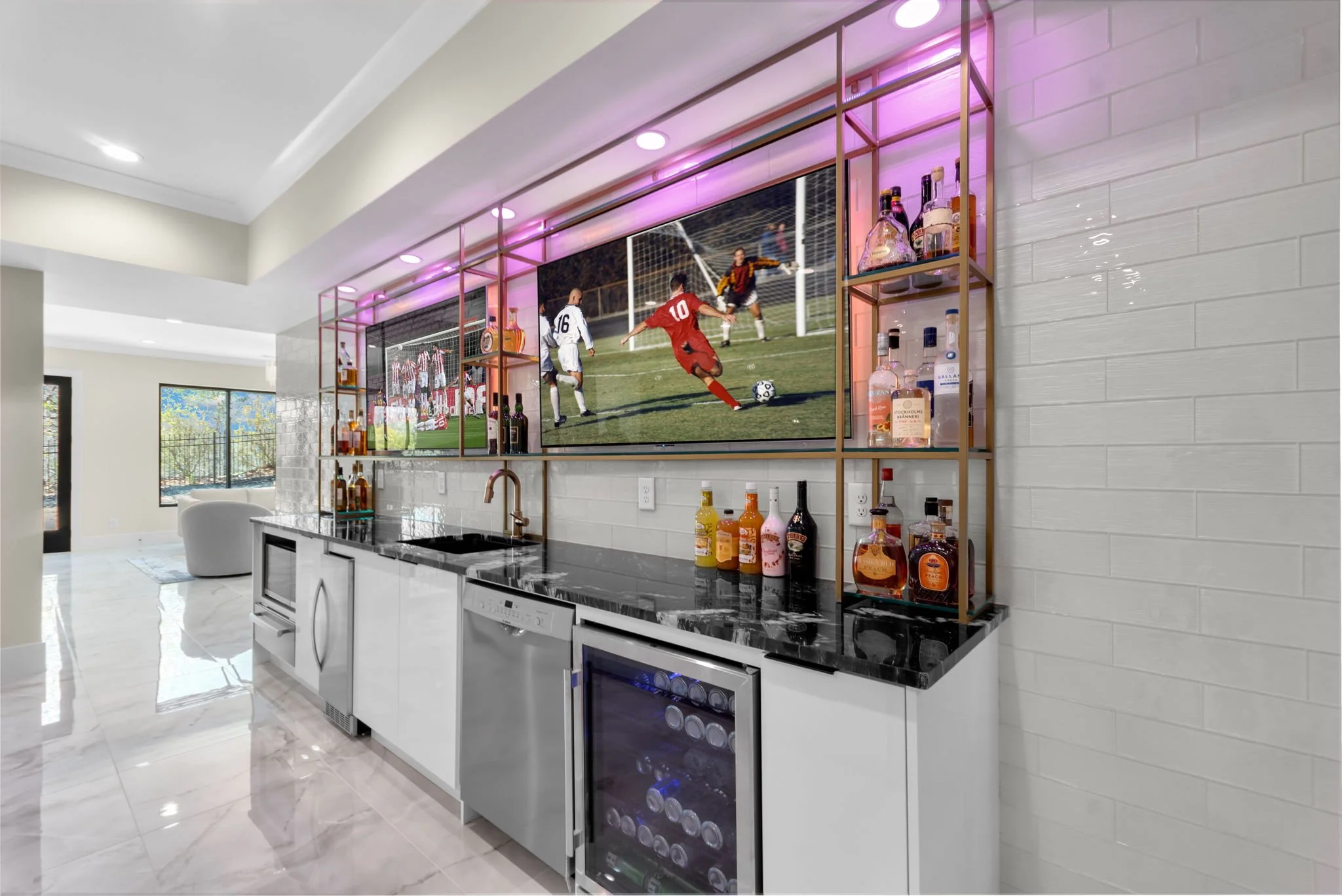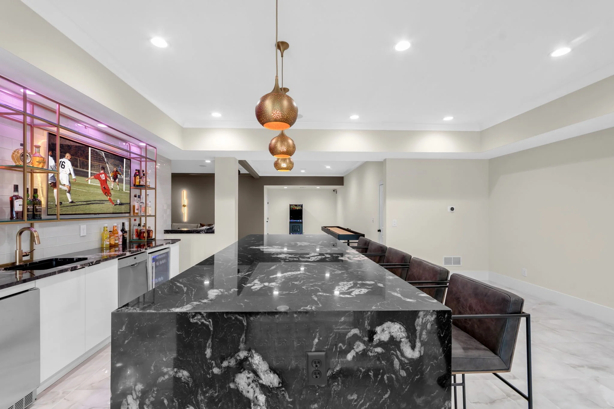 Step into Bojana's Basement, where modern elegance and entertainment converge effortlessly. Our client dreamt of an open floor plan, complete with a hidden man cave for her husband and a sleek entertainment area. We delivered this and more, incorporating luxurious amenities and thoughtful design elements.