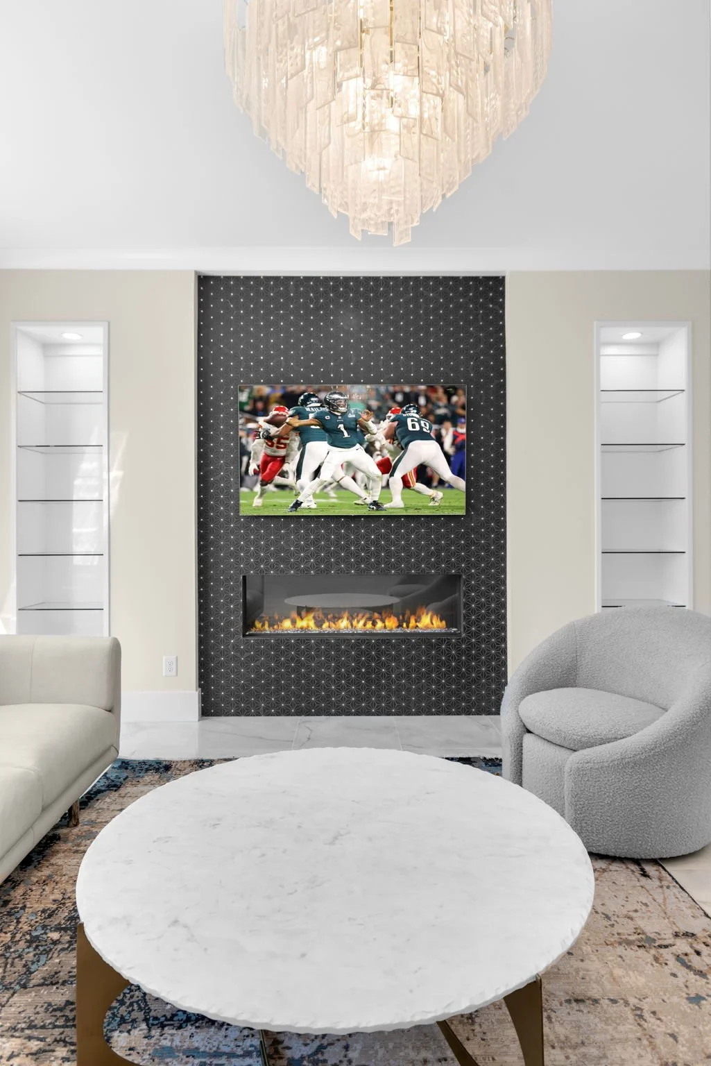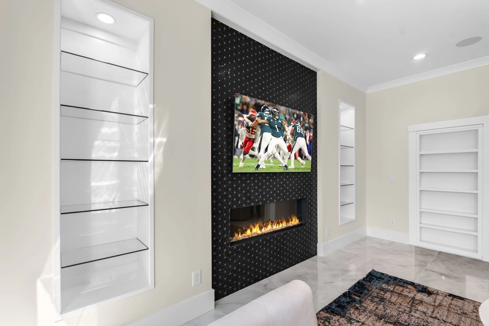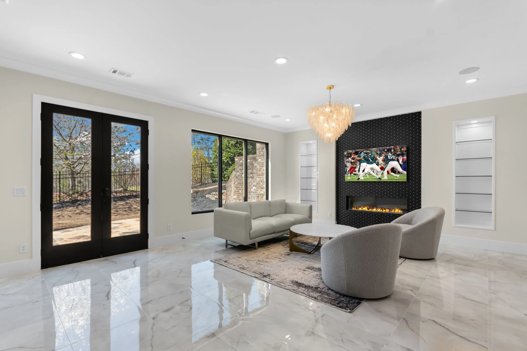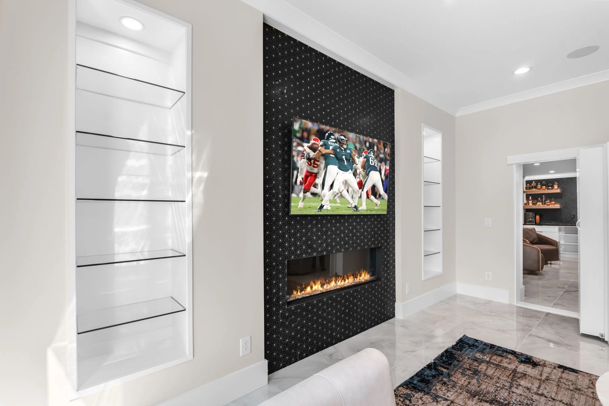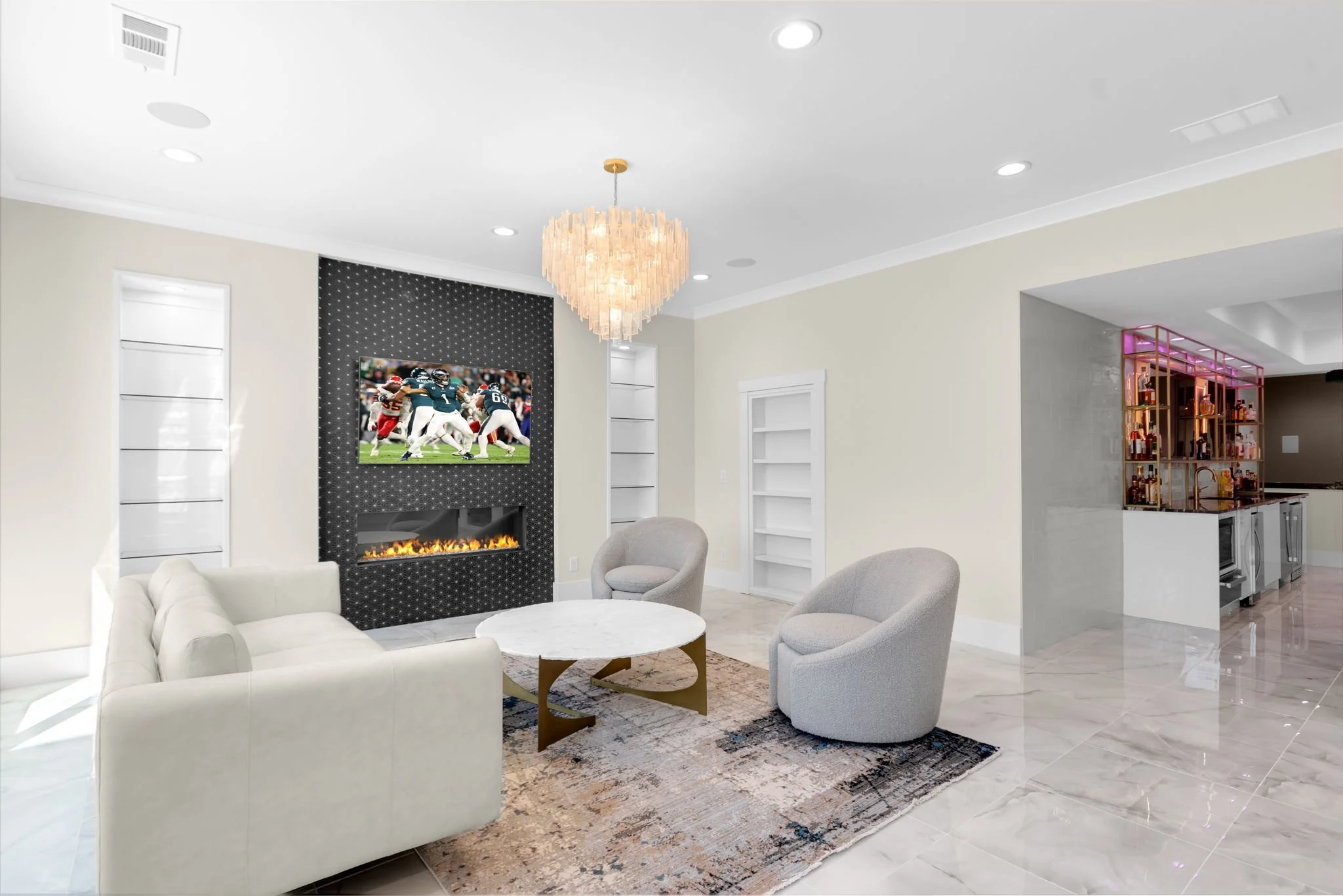 Step into Bojana's Basement, where modern elegance and entertainment converge effortlessly. Our client dreamt of an open floor plan, complete with a hidden man cave for her husband and a sleek entertainment area. We delivered this and more, incorporating luxurious amenities and thoughtful design elements.